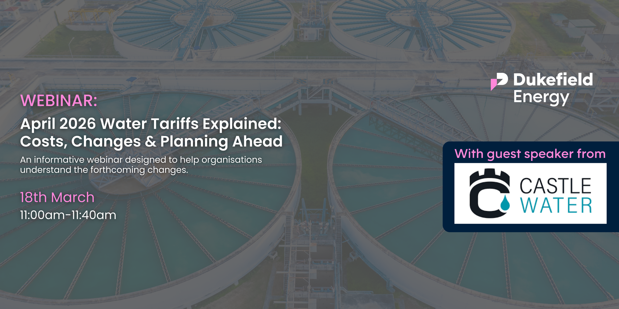 Dukefield Energy are partnering with Castle Water to deliver an informative webinar designed to help organisations understand the forthcoming changes in water charges in England coming into place in April 2026 and the methodology behind these changes.
